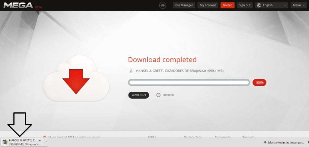 9- Recuerda que al terminar la descarga se le bajara automáticamente la película. No mas de 2 minutos tendrán que esperar.